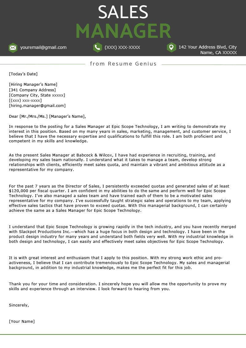 | Sales Manager Cover Letter Sample |