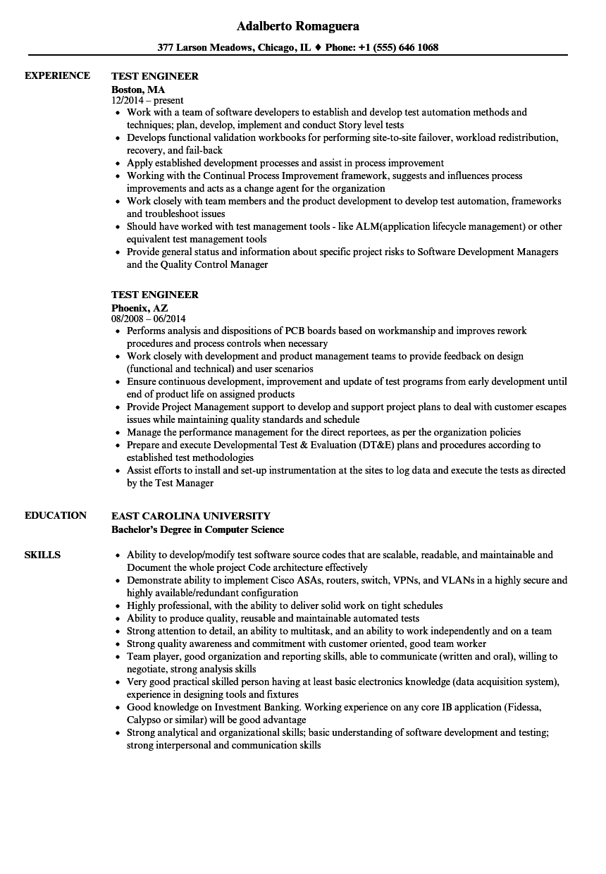 | Test Engineer Resume Samples Velvet Jobs |